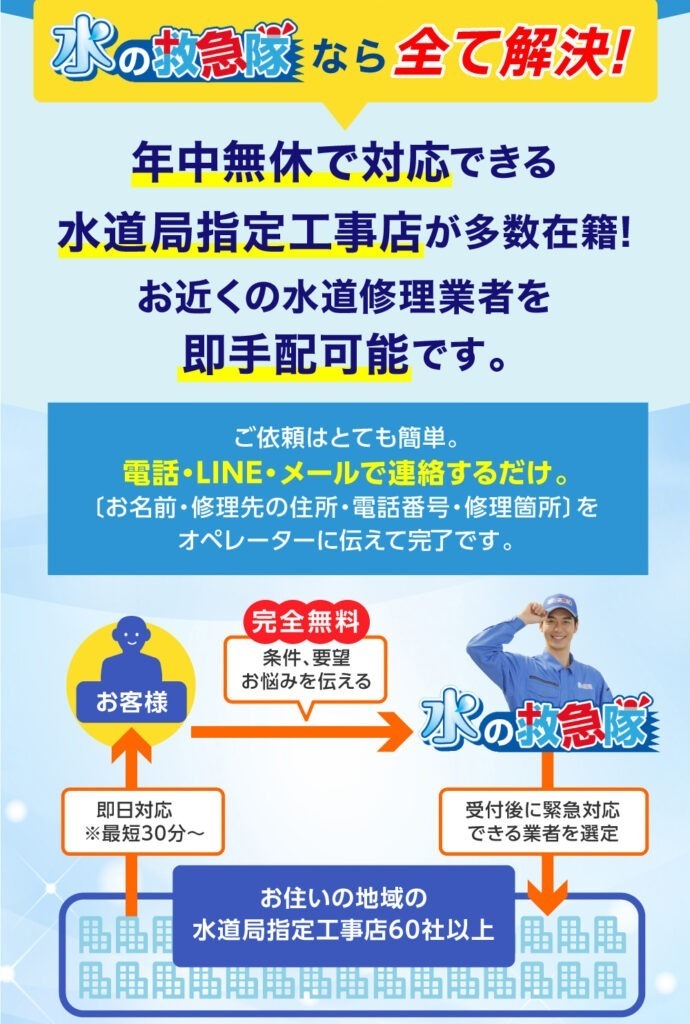 『蛇口の水漏れ』や『トイレのつまり』など、水のトラブルが発生したら、まずは気軽にコールセンターへお問い合わせ下さい。