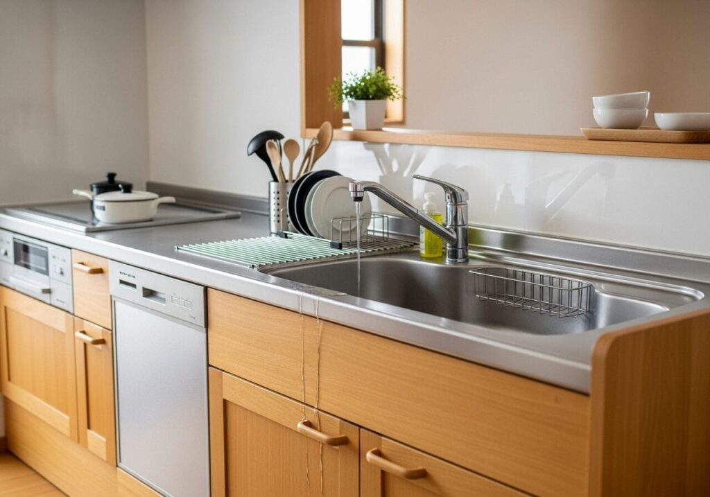 厨房の床に排水が溜まる・水はけが悪い|東京都中央区